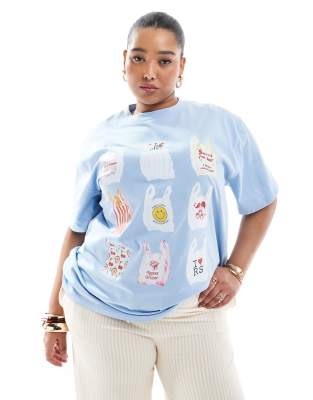 Camiseta azul con estampado gráfico de bolsa y logo exclusiva de Renee Studio Plus