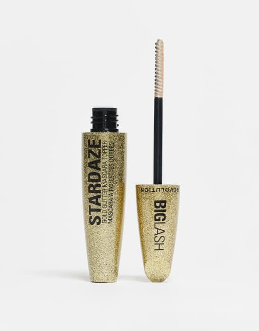 Rímel de acabado con purpurina para cabello y cejas Big Lash Stardaze de Revolution: Tono Stardust Gold