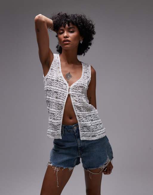 Chaleco largo blanco de encaje Haven de Rhythm