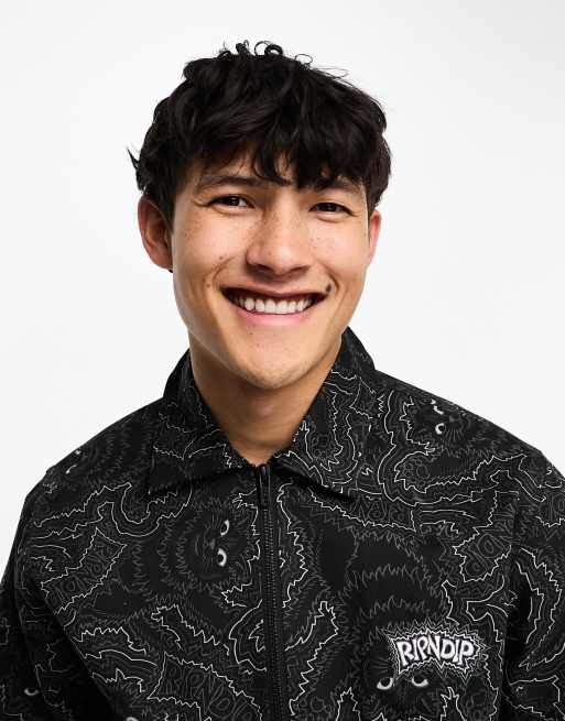 Chaqueta negra estilo entrenador con estampado integral de gatos de Rip N Dip (parte de un conjunto)