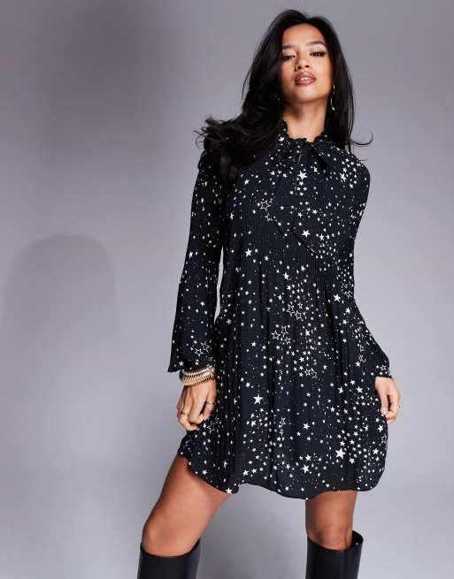 Vestido corto negro plisado con estampado de estrellas de River Island Petite
