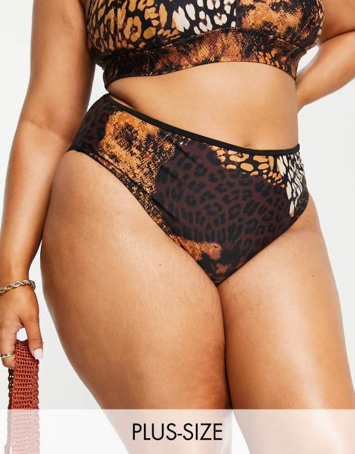 Braguitas de bikini marrones con estampado animal variado de River Island Plus