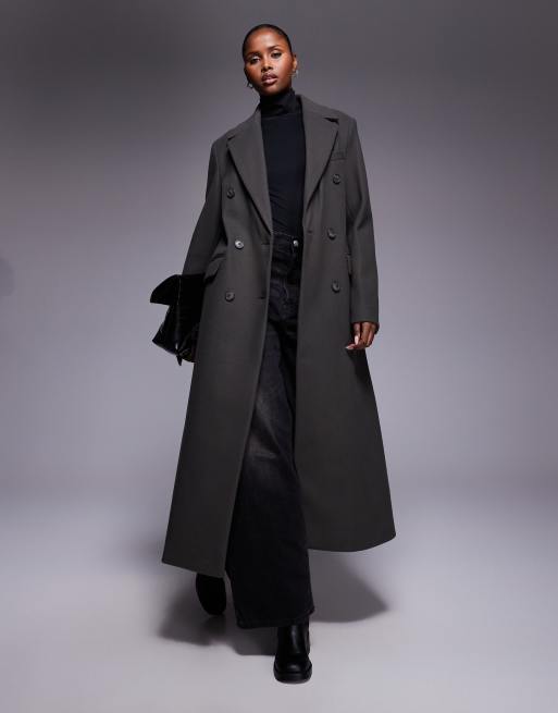 Abrigo de sastre caqui con doble botonadura de River Island