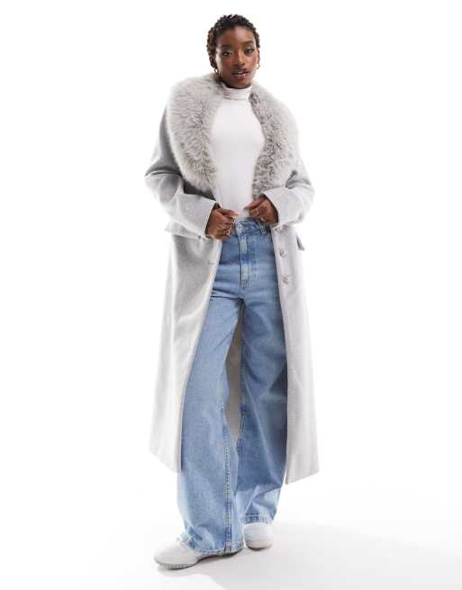 Abrigo de sastre gris claro con cuello de piel sintética de River Island