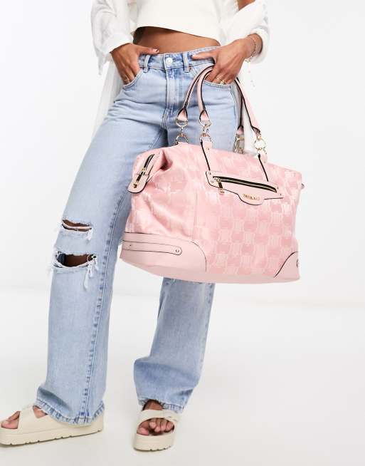 Bolso de viaje rosa claro con diseño de monograma de River Island