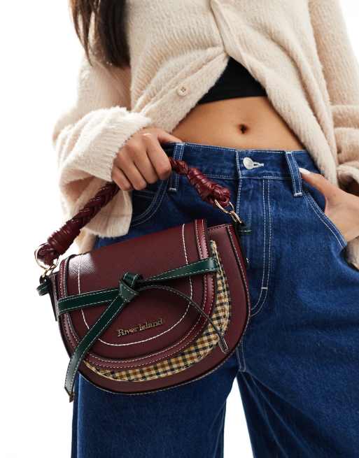 Bolso saddle burdeos con detalle de cuadros escoceses de River Island