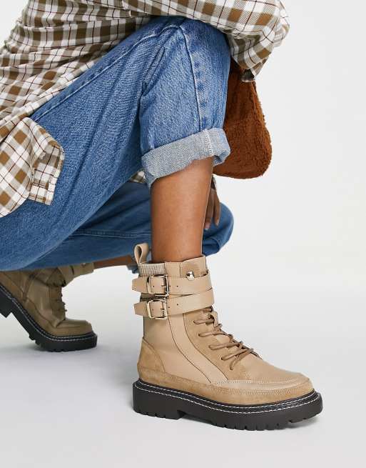 Botas beis planas con correa doble de River Island