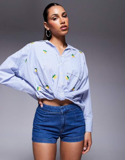 Camisa azul claro a rayas de manga larga de River Island
