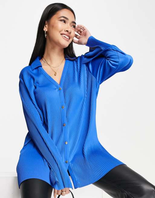 Camisa azul luminoso plisada de River Island (parte de un conjunto)