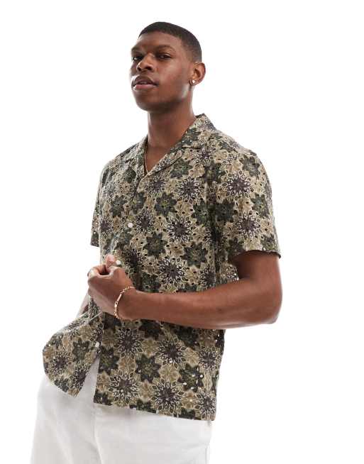 Camisa caqui con estampado floral de bordado inglés de River Island