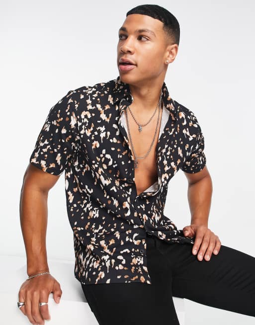Camisa de fiesta marrón oscuro de manga corta con estampado de leopardo de River Island