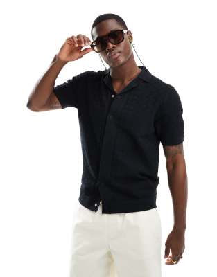 Camisa negra con cuello de solapas de punto de River Island