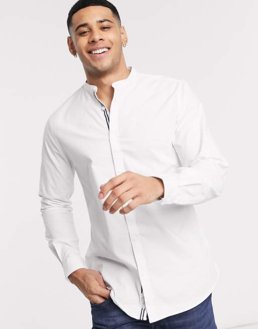 Camisa Oxford de corte slim con cuello henley en blanco de River Island
