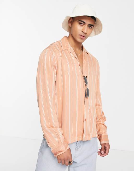 Camisa rosa ceñida de manga larga a rayas con solapas de River Island