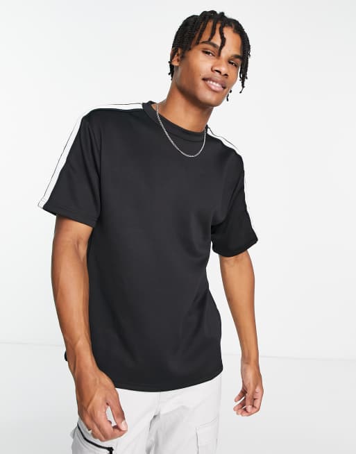 Camiseta negra de corte estándar con detalle de cinta de River Island