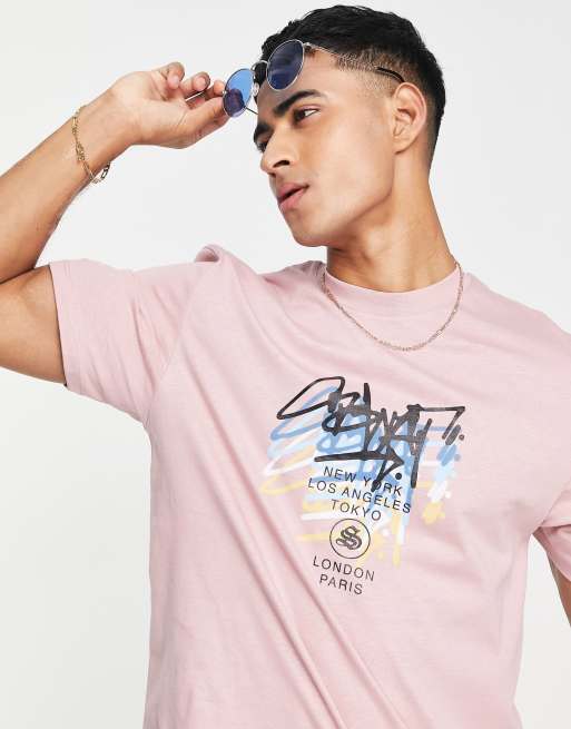 Camiseta rosa con estampado de grafiti en la espalda de River Island