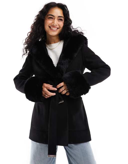 Chaqueta corta negra con cinturón de piel sintética de River Island