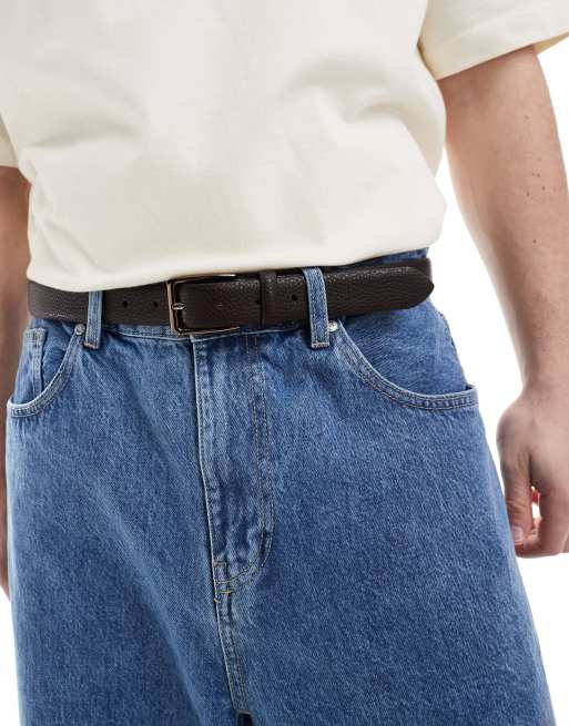 Cinturón marrón oscuro de cuero granulado sintético de River Island