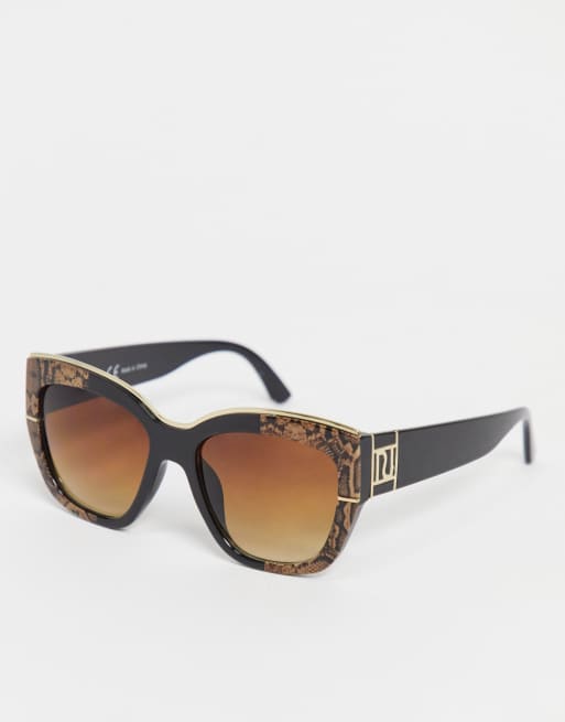 Gafas de sol negras extragrandes con diseño partido de serpiente Glam de River Island
