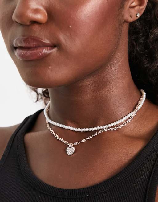 Gargantilla dorada con perla e incrustaciones de cristal de River Island