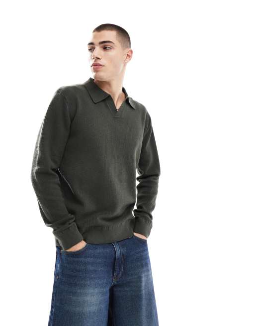 Jersey caqui con cuello abierto con solapas de River Island