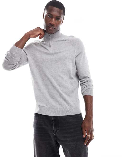 Jersey gris jaspeado con cremallera corta de River Island
