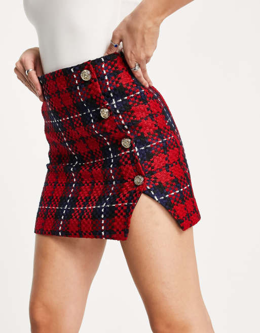 Minifalda roja a cuadros escoceses de bouclé de River Island (parte de un conjunto)