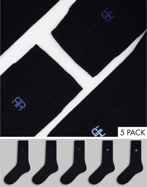 Pack de 5 pares de calcetines negros con logo de River Island