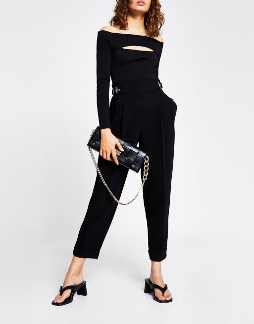 Pantalones negros de pinzas estilo globo confeccionados en sarga de River Island