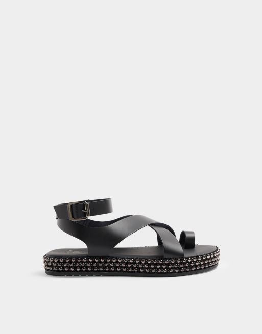 Sandalias negras con hebilla y detalle de tachuelas de River Island