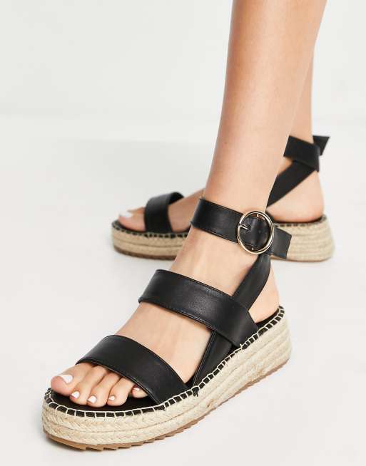 Sandalias negras estilo alpargatas con cuña y suela gruesa de River Island