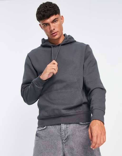 Sudadera gris de corte slim con capucha y detalle de texto de River Island