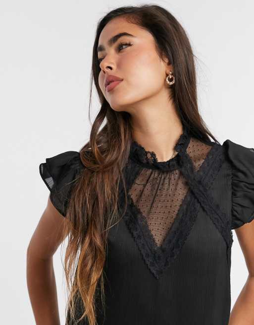 Top estilo victoriano de satén y encaje en negro de River Island