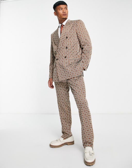 Traje marrón de corte holgado con estampado geométrico de River Island