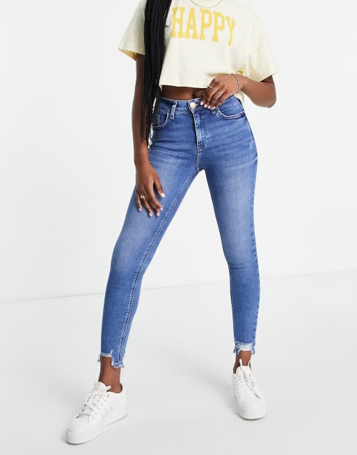 Vaqueros ajustados con lavado medio y bajo sin rematar Amelie de River Island