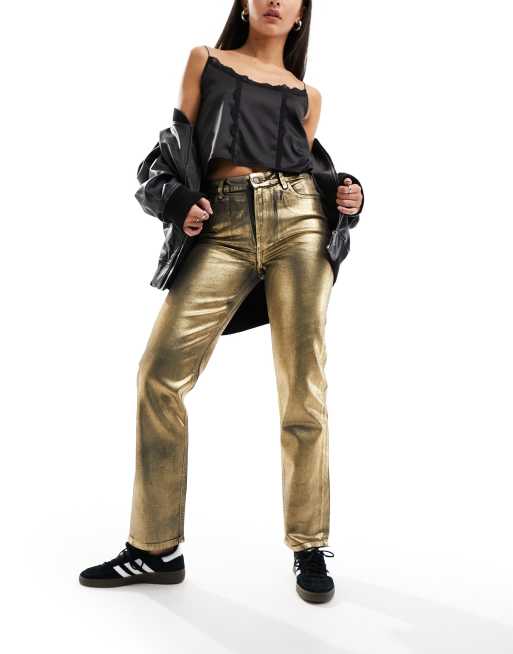 Vaqueros dorados revestidos de pernera recta de River Island