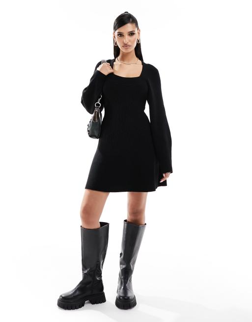 Vestido corto negro con escote cuadrado y detalle de botones de River Island