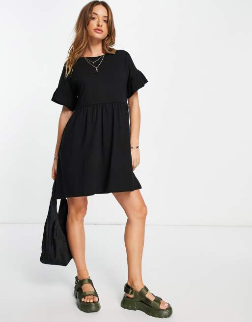 Vestido corto negro estilo camiseta de corte amplio con volantes de River Island