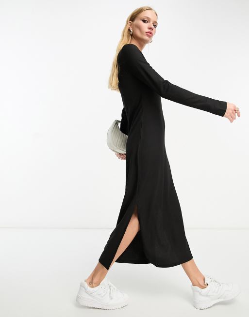 Vestido midi negro de corte recto con abertura lateral de River Island