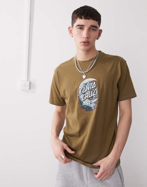 Camiseta azul con estampado gráfico de media luna y logo de Santa Cruz
