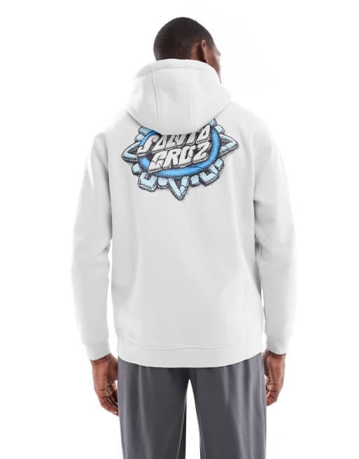 Sudadera gris claro de corte estándar con capucha, estampado en la espalda y gráfico del logo de Santa Cruz