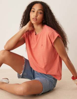 Camiseta naranja coral lisa con detalle de calavera de Scalpers