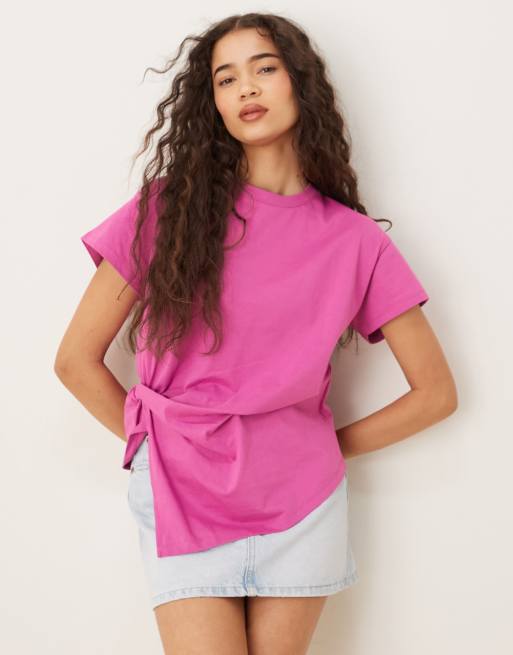 Camiseta rosa buganvilla con detalle anudado en el lateral de Scalpers