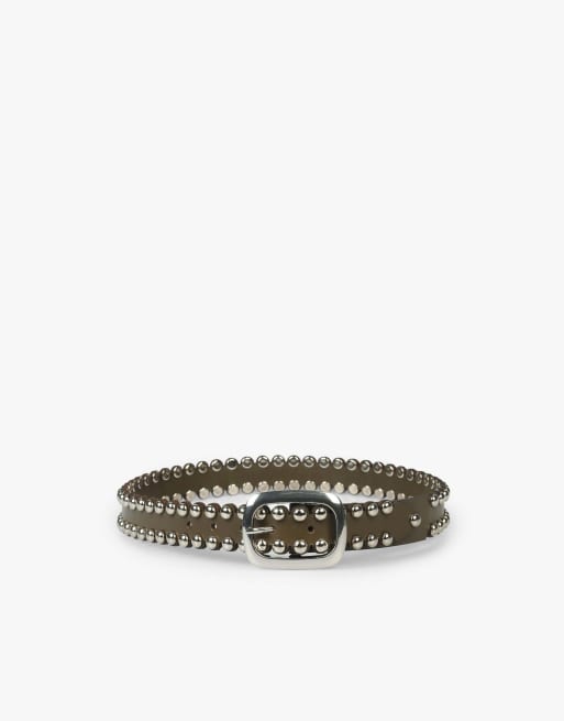 Cinturón caqui de cuero con tachuelas de Scalpers