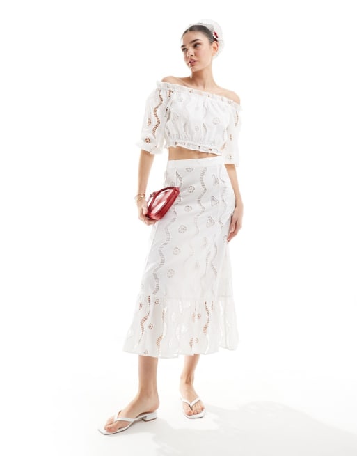 Conjunto blanco de top y falda bordados de Scalpers