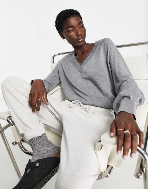Jersey gris medio con cuello de pico pronunciado Lara de Scalpers