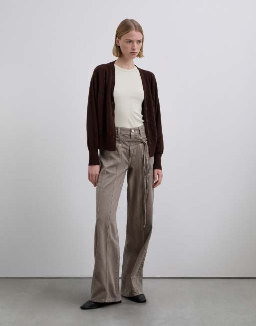 Vaqueros marrón topo con cinturón y costuras de Scalpers