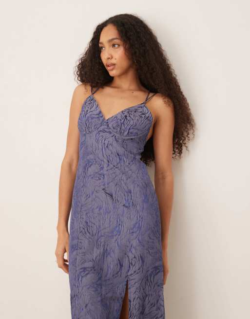 Vestido azul con tiras cruzadas de jacquard de Scalpers