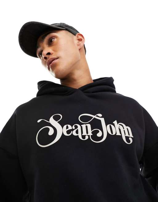 Sudadera negra sin cierres con capucha y estampado del logo de estilo retro de Sean John