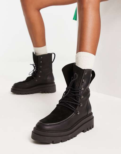 Botas negras con cordones de cuero de Selected Femme